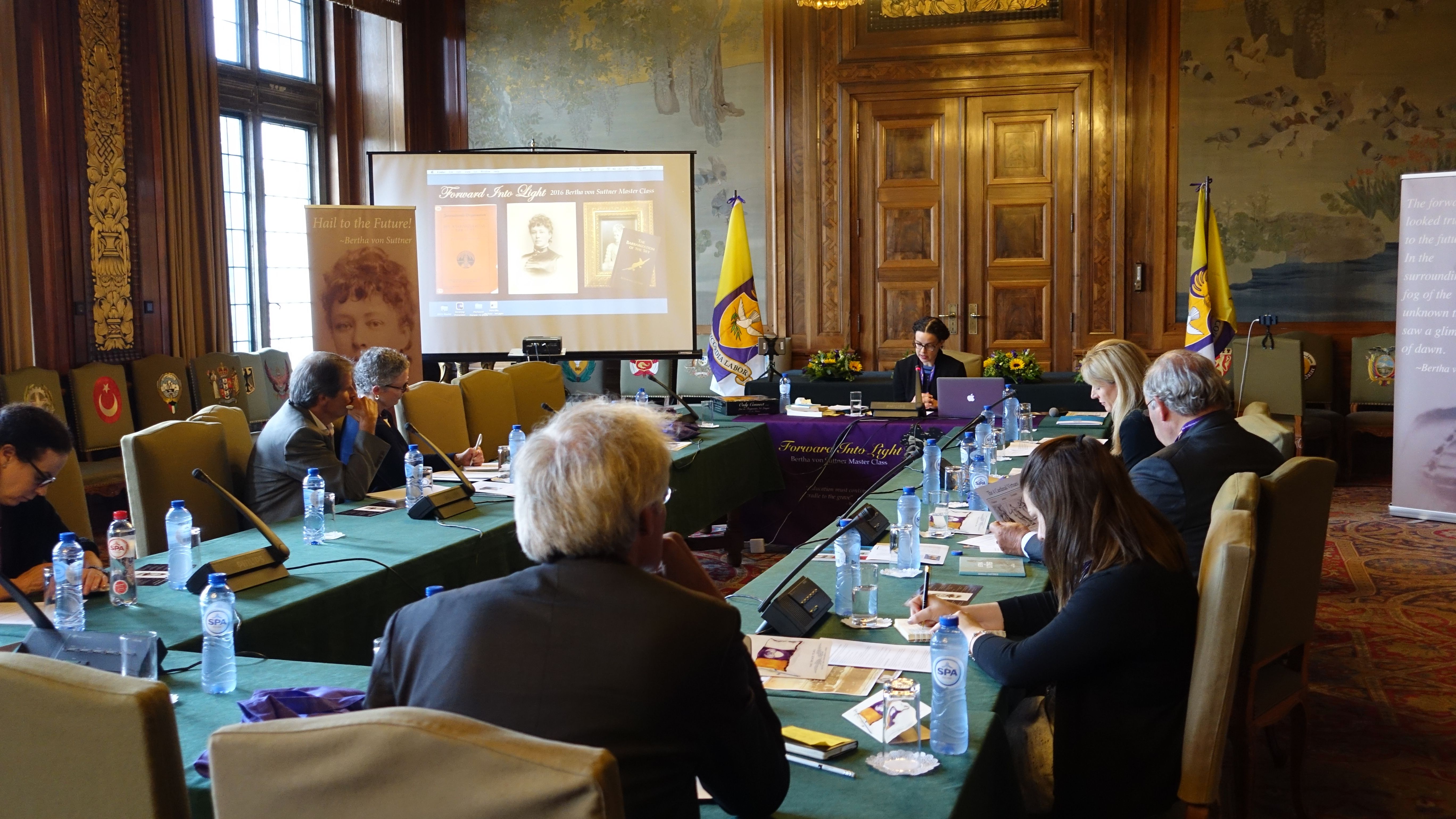 Since 2014, we have worked with the Peace Palace Library in The Hague to organize an annual Bertha von Suttner Master Class. A two day long series of talks inspired by the work of Bertha von Suttner (1843-1914), each Master Class is focused on a theme from peace history. The theme of each year has been as follows: